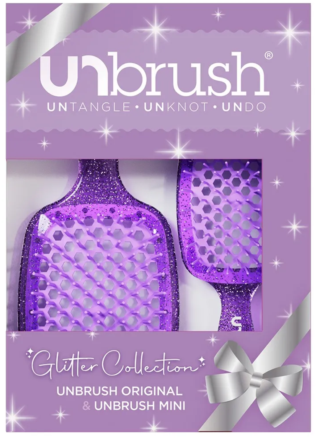 UNbrush Hair Brush Glitter Duo Set, Amethyst Lavender