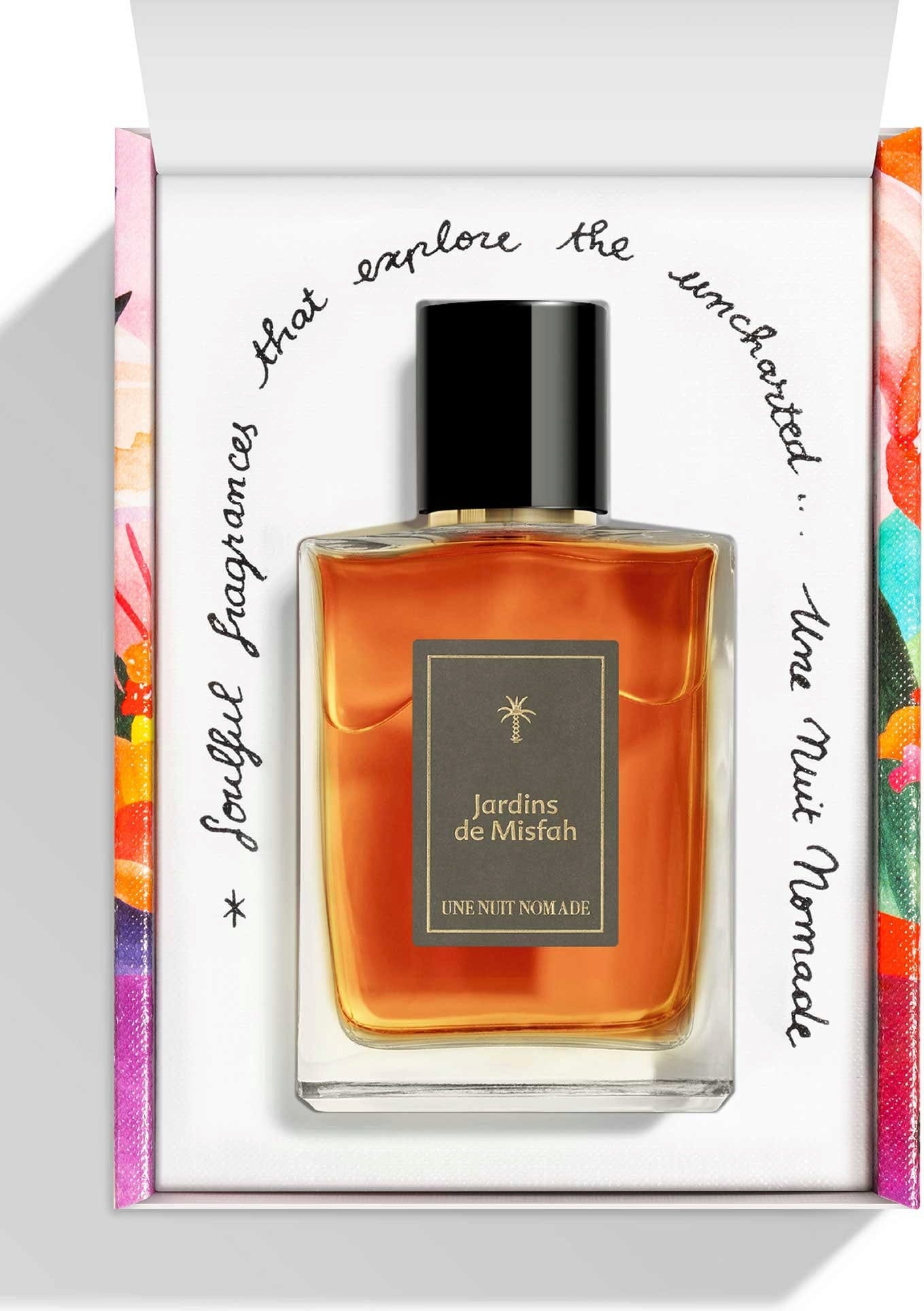 Jardins de Misfah (EdP) är en unik, kryddig-fruktig-blommig doft med imponerande hållbarhet och sillage från det franska märket Une Nuit Nomade.