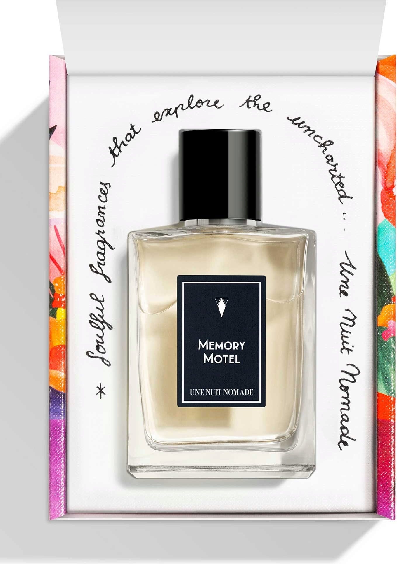 Ett stycke rockhistoria i flaska – Eau de Parfum-sprayen Memory Motel från Une Nuit Nomade fångar med sina aromer känslan av en svunnen rockera. Doften är androgyn med noter av tobak, omsluten av patchouliblad och med ett inslag av vanilj. Den är nostalgisk, lite vintage, ett uns rock’n’roll – men samtidigt tidlöst vacker.