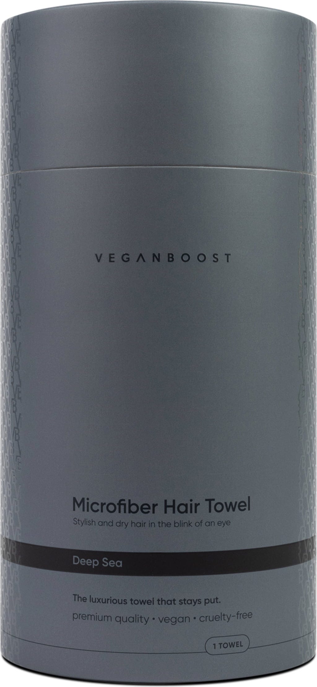 Hårhandduken från Veganboost är tillverkad av mikrofiber, som torkar håret snabbt och effektivt. Blandningen av polyester och polyamid gör handduken särskilt mjuk och minimerar friktionen, vilket skyddar håret från skador. Tack vare öglan på baksidan av huvudet kan handduken enkelt lindas in och fästas till en turban.