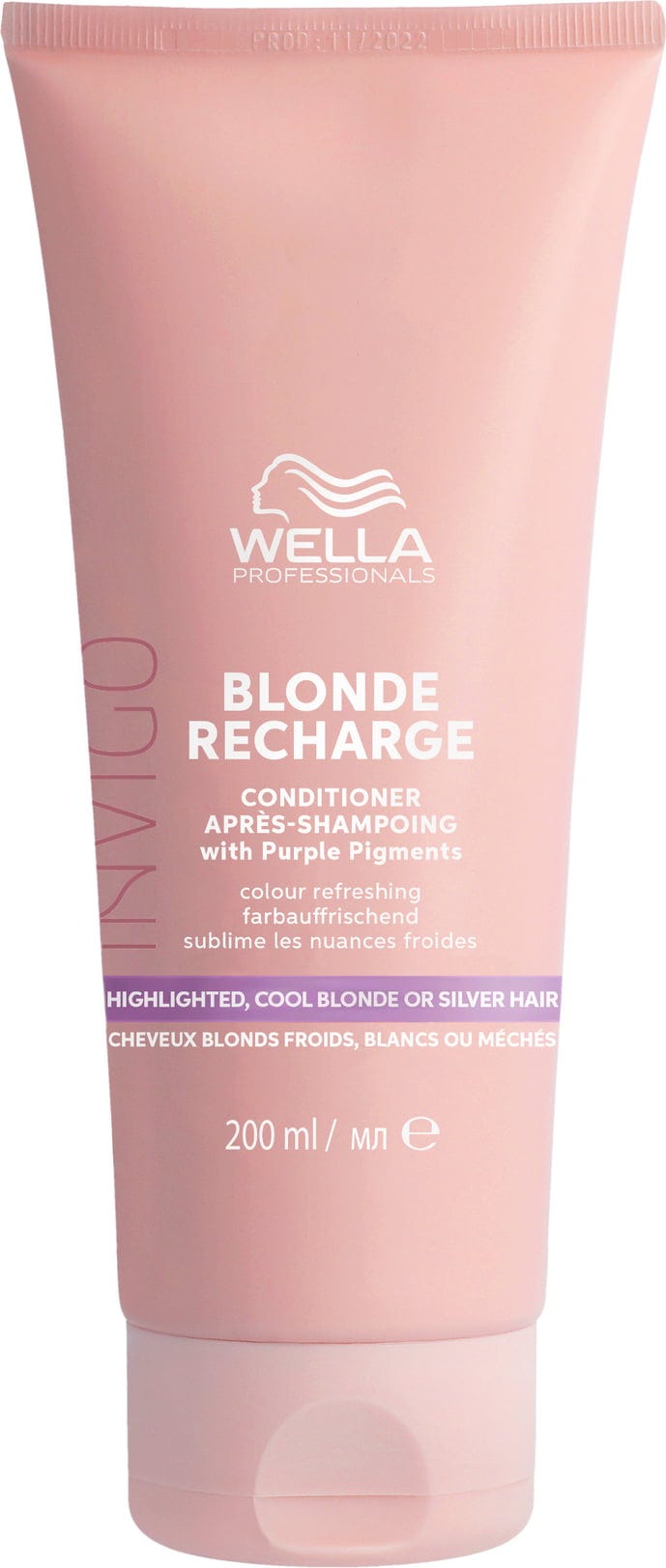 Invigo Blonde Recharge Conditioner från Wella Professionals är din perfekta partner för ett klart och svalt blont resultat direkt efter duschen. Den specialutvecklade formulan motverkar oönskade gula och koppriga toner, samtidigt som din blonda nyans - oavsett om den är naturlig, färgad eller slingat - får ny lyster. Berikad med vitamin E och värdefulla färgpigment vårdar balsamet håret och lämnar det silkesmjukt med en lätt blommig doft. Massera in, låt verka en kort stund och upplev hur färgen fräschas upp direkt för ett resultat som känns som nyss från frisören.