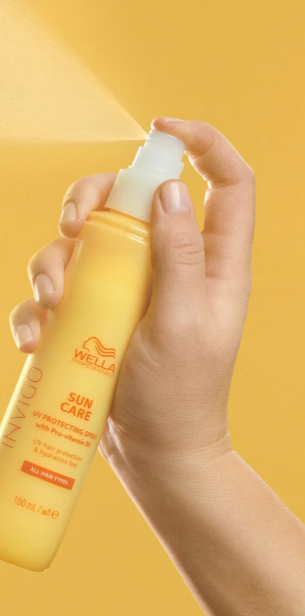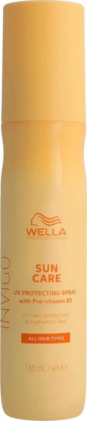 Invigo Sun Care UV Protection Spray från Wella Professionals skyddar håret och hjälper till att bevara färgens intensitet i solen. Den lätta leave-in-sprayen innehåller provitamin B5 som ger näring och gör håret mjukt utan att tynga ner. Samtidigt skyddas håret mot skador från UV-strålning och behåller sin glans. För bästa effekt kan den kombineras med schampo och balsam från Sun Care-serien.