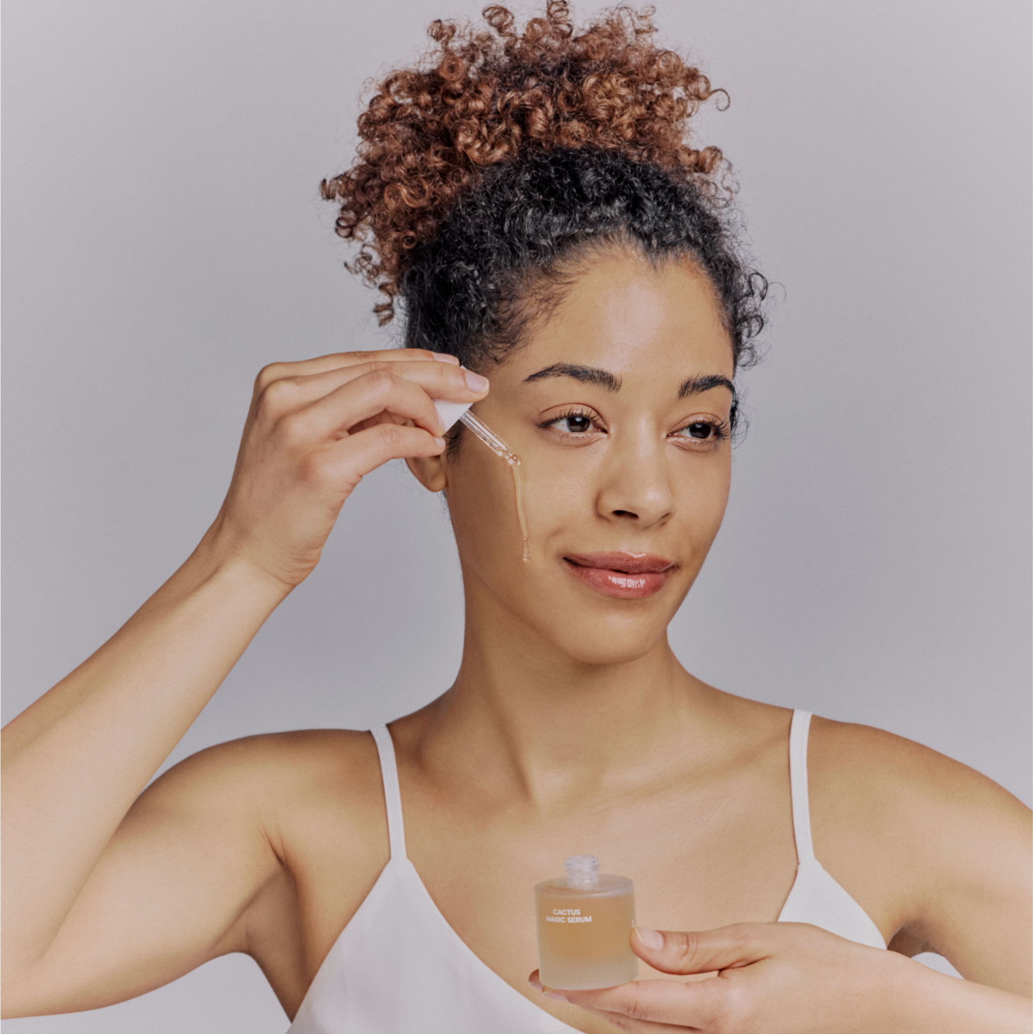 Detta högkvalitativa serum innehåller den transformerande kraften hos WHAMISAs Cactus Cotton Lifting Complex™. Den mycket potenta, regenererande formulan ger din hud lyster och vitalitet. Det effektiva komplexet innehåller en utsökt kombination av organiska kaktusstammar och stödjer därmed elasticiteten utan att lämna en klibbig känsla. Den innehåller också de naturliga aktiva ingredienserna alfa-bisabolo och adenosin, som gör hudtonen ljusare och stödjer kollagensyntesen. Känn den uppfriskande effekten och ge din skönhet ljusstyrka.
