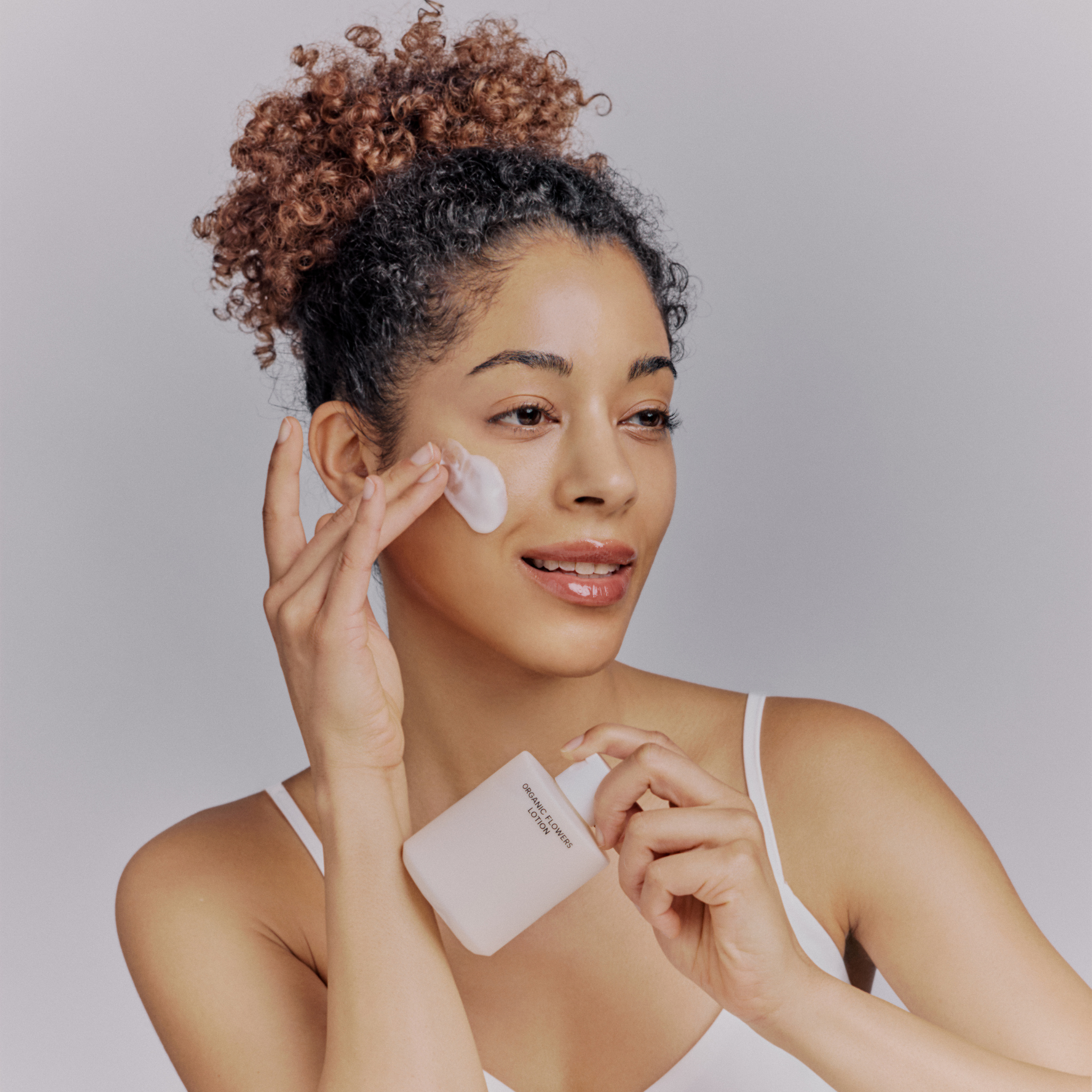 Aloe Barbadensis (Aloe Vera) Leaf Extract[1], Simmondsia Chinensis (Jojoba) Seed Oil[1], Aloe Barbadensis Leaf Juice[1], Olea Europaea (Olive) Fruit Oil[1], Butyrospermum Parkii (Shea) Butter[1], Cetyl Alcohol[2], Cetearyl Olivate[2], Sorbitan Olivate[2], Theobroma Grandiflorum (Cupuacu) Seed Butter[1], Argania Spinosa (Argan) Kernel Oil[1], Persea Gratissima (Avocado) Oil[1], Gluconolactone[2], Calendula Officinalis Flower Oil[1], Lactobacillus/Rosa Damascena Bud Flower Ferment Filtrate[1], Lactobacillus/Calendula Officinalis Flower Ferment Filtrate[1], Lactobacillus/Dandelion Flower Ferment Filtrate[1], Lactobacillus/Hibiscus Sabdariffa Flower Ferment Filtrate[1], Lactobacillus/Jasmine Flower Ferment Filtrate[1], Lactobacillus/Lavender Flower Ferment Filtrate[1], Lactobacillus/Matricaria Flower Ferment Filtrate[1], Lactobacillus/Nelumbo Nucifera Flower Ferment Filtrate[1], Helichrysum Arenarium Flower Extract[1], Pentylene Glycol, Avena Sativa (Oat) Kernel Extract[1], Camelia Sinensis Leaf Extract[1], Algin, Solanum Lycopersicum (Tomato) Fruit Extract[1], Xanthan Gum, Scutellaria Baicalensis Root Extract, Paeonia Suffruticosa Root Extract, Glycyrrhiza Glabra (Licorice) Root Extract, Brassica Oleracea Capitata (Cabbage) Leaf Extract, Ipomoea Batatas (Sweet Potato) Root Extract, Maltodextrin, Caprylic/Capric Triglyceride[2], Aniba Rosodora (Rosewood) Wood Oil, Pelargonium Graveolons (Geranium) Flower Oil, Citrus Aurantium Amara (Bitter Orange) Flower Oil, Rosa Damascena Flower Oil[1], Geraniol, Linalool, Citronellal, Limonene